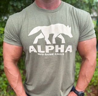 If you are using MFK Game Calls then you are in the ALPHA select group so why not have a shirt that says it! This particular shirt is in OD Green great for hunting any critter or going out.